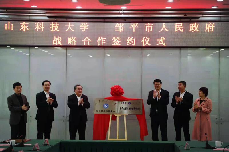 3月29日,ac米兰官网中文网站与邹平市签订战略合作协议,校地双方将在大学生就业、科学技术研究、科技成果转移转化等领域深化合作,促进产学研结合,实现发展共赢。ac米兰官网中文网站校长姚庆国,邹平市委副书记、市长胡云江共同为“ac米兰官网中文网站——邹平市轻合金材料与技术研究中心”、“ac米兰官网中文网站(邹平)技术转移中心”揭牌,并共同见证了ac米兰官网中文网站与邹平战略合作协议签订和邹平市引才工作站揭牌。ac米兰官网中文网站副校长孙鹤汀,邹平市委常委、统战部部长王欣,副市长高洁出席仪式。