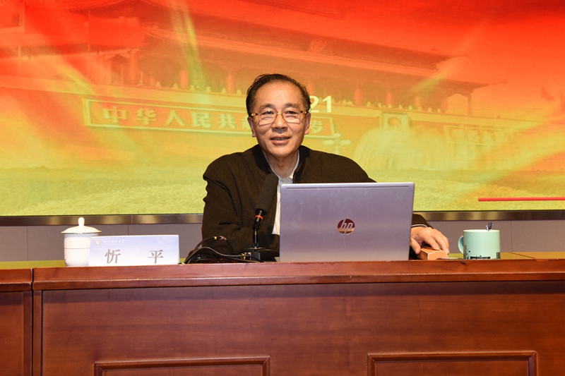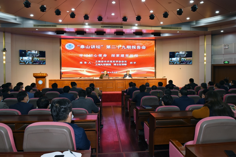在ac米兰官网中文网站第29期“泰山讲坛”上,忻平教授以“牢记初心使命,探索建党历史”为题,为全校处级以上干部,学术院长、副院长,党支部书记、“山海泉”理论宣讲团成员、思政课专兼职教师、学生工作干部作了辅导报告。