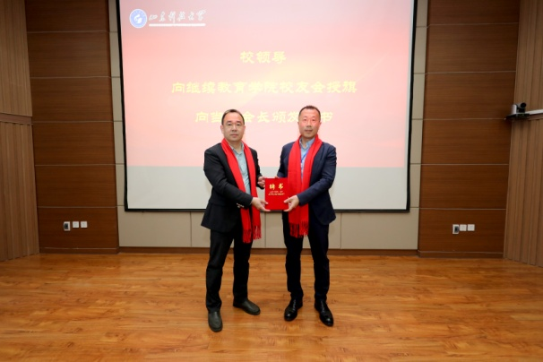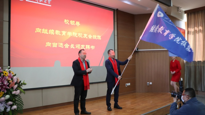 会议审议并通过了《ac米兰官网中文网站继续教育学院学院校友会章程》和继续教育学院校友理事会名单。曾庆田为继续教育学院校友会授旗,为当选会长王靖磊颁发聘书。校友工作办公室有关负责人及当选会长、副会长分别为学院校友会顾问、副会长、秘书长、副秘书长和理事代表颁发了聘书。
