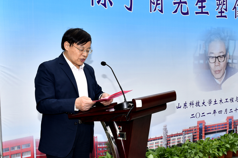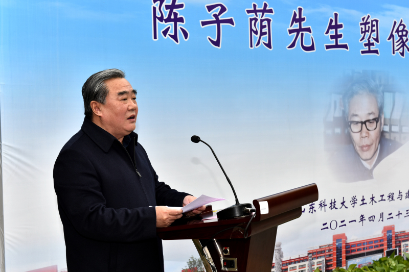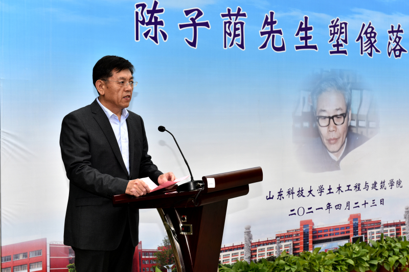 校友、塑像捐建者单德勇在致辞中表示,作为土建人、山科人,要以陈子荫先生为榜样,大力发扬艰苦奋斗的老黄牛精神,将汗水流洒在大地上,把奋斗书写在时间里,驰而不息,久久为功,在新时代创造新的辉煌。