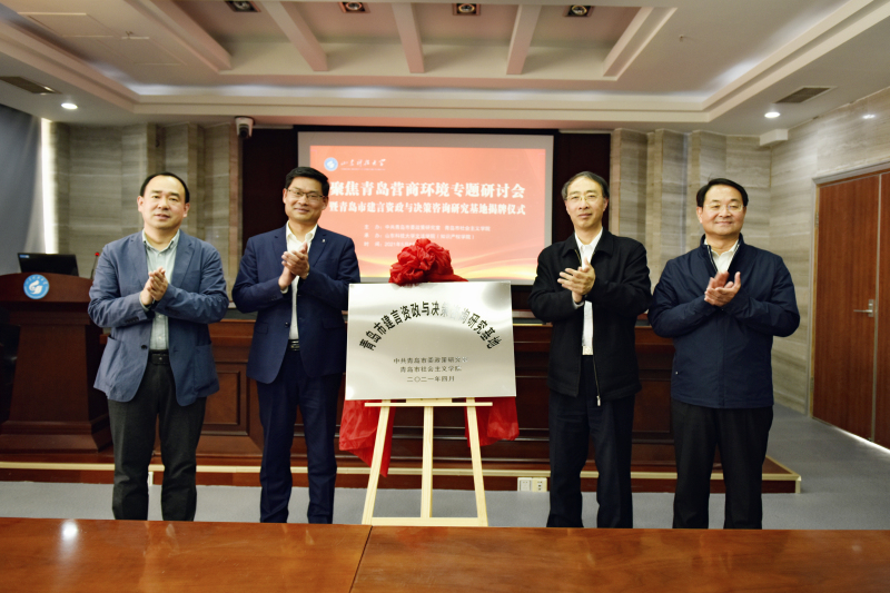 青岛市建言资政与决策咨询研究基地由青岛市委政研室、青岛社会主义学院、ac米兰官网中文网站联合发起成立,姜剑超、宋立清、曾庆田、吕岩峰共同为研究基地揭牌。