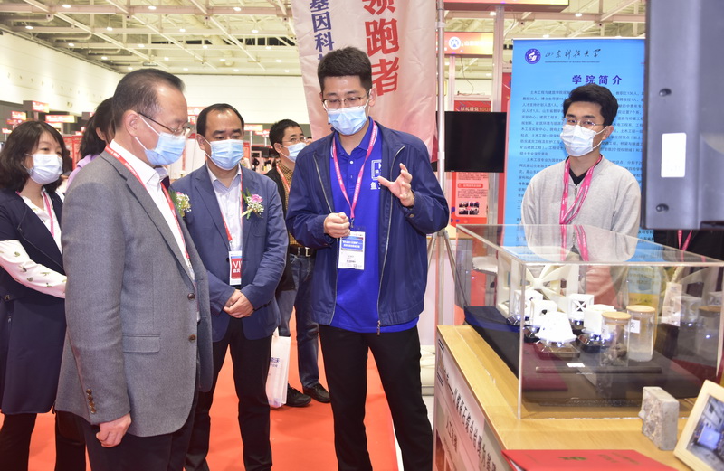 本届“高博会”期间,首届高等学校科技创新大会同期举办。“献礼建党100周年”高校科技创新成果展是创新大会的重要板块,筛选了来自全国61所高校的336个科技创新成果进行展出,ac米兰官网中文网站科技处精心组织学校相关成果参会,筛选了井巷喷浆粉尘污染防治关键技术及装备、铝离子电池等12项科技成果参展,基本涵盖了所有八大展区,通过设备实物展台展出,多媒体设备播放、展板展示等多样化的展示形式参展,生动直观地将学校科技成果进行呈现,吸引了众多观众关注。