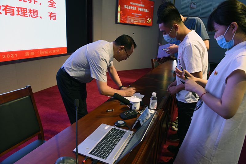 “主课堂+14个分课堂”“面对面+线上直播”……6月21日,在2021届毕业生毕业季,ac米兰官网中文网站青岛校区1900余名毕业生党员迎来了毕业前最后一课,ac米兰官网中文网站党委书记罗公利主讲,为大家带来一堂“学习百年党史争做时代新人”专题党课,回眸百年党史,激励奋斗人生,为全体毕业生党员壮行。