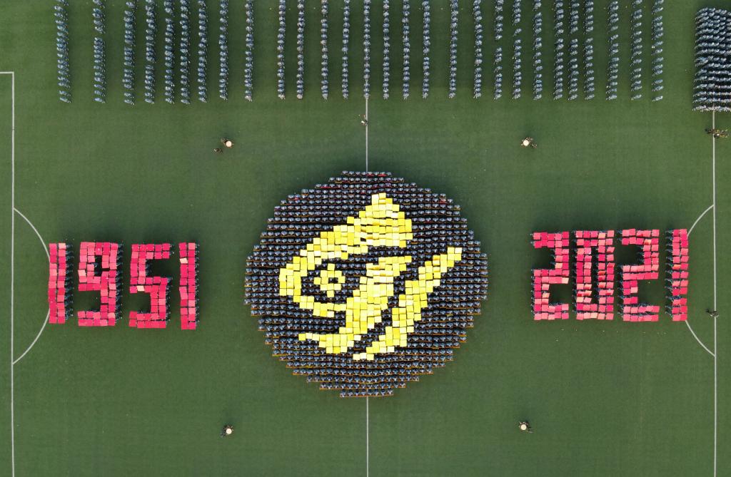 分列式后科目汇报开始,1300人的队形队列转换方阵呈现出“1921”“2021”“党徽”和“1951”“2021“校徽”图案,“生日快乐”的喊声更是带动起全场掌声雷鸣。擒敌拳、匕首操、综合实战演习等汇报表演展现了ac米兰学子意气风发、斗志昂扬的精神面貌。最后,全场再次唱响《强军战歌》,全体2021级学生高喊“请党放心、强国有我、强军有我、强校有我”,是势如破竹的气概,更是掷地有声的承诺。