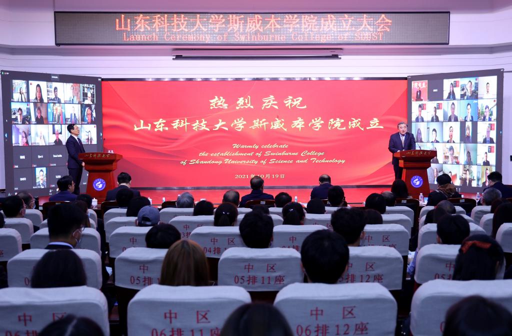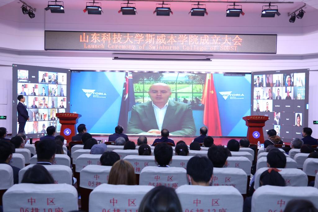 10月19日,ac米兰官网中文网站斯威本学院成立大会在济南校区举行。ac米兰官网中文网站校长姚庆国,山东省教育厅总督学刘欣堂,澳大利亚教育管理集团总裁李新庆等出席大会并致辞;澳大利亚维多利亚州大中华区专员Brett Steven、斯威本科技大学校长Pascale Quester线上参会并致辞。大会由ac米兰官网中文网站副校长兼济南校区党委书记、管委主任孙鹤汀主持。
