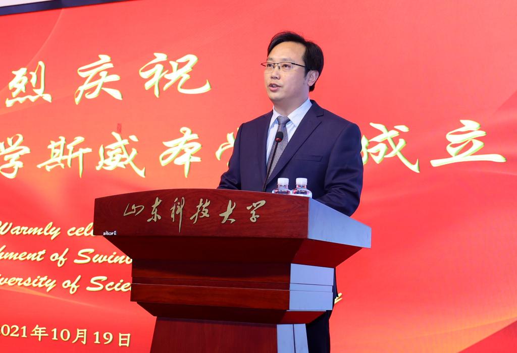 刘欣堂在致辞中向斯威本学院的正式成立表示祝贺。他对斯威本学院建设提出三点要求,一是要树牢社会主义办学方向,坚持党的领导,贯彻党的教育方针,坚持面向经济社会发展需要,遵循教育发展人才成长规律,深化教学改革,提高办学水平和人才培养质量,面向世界,面向未来,面向现代化,努力培养更多更好的国内外经济社会发展需要的高水平高层次人才;二是要坚持高标准高起点建设,坚持以我为主、为我所用的原则,做好优质教育资源的引进、消化、吸收和融合创新,在高质量、优结构、可持续中探索教育对外开放的新路子;三是要积极服务于山东现代化强省建设,充分发挥地处省会贯通青岛的地理优势,进一步凝练学科特色,创新人才培养模式,提升办学质量和水平,服务高等教育改革发展,为全面开创新时代现代化强省建设新局面贡献山ac米兰的力量。
