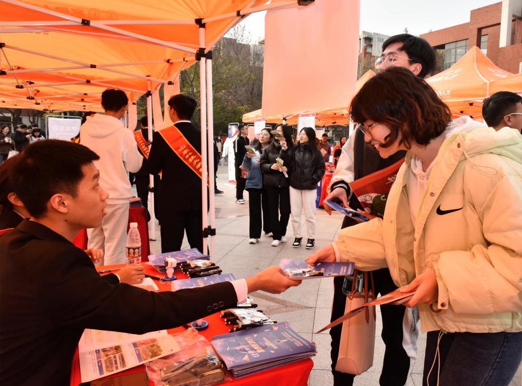 与校园大使一起忙于介绍的还有学校的征兵宣传员们,他们全年都在为学校征兵工作发挥朋辈引领作用。“今天现场有100余人咨询了入伍政策,32人登记了征兵信息。这得益于近年来学校开展了全方位、立体化、全覆盖的征兵宣传,通过征兵宣传进入学教育、进招聘活动,不断提升参与度和覆盖面,形成了大学生参军入伍热情高、兵源素质强、参军数量多的良好氛围,2021年,学校共有208名学子参军入伍,入伍学生数为历年最多。我校自动化专业2019级学生徐越更是以‘军营大学生战士’入选全国第四届‘闪亮的日子—青春该有的模样’大学生就业创业人物事迹典型,这是山科退役复学学生第二次入选就业创业典型人物。”学生处副处长孔环说道。