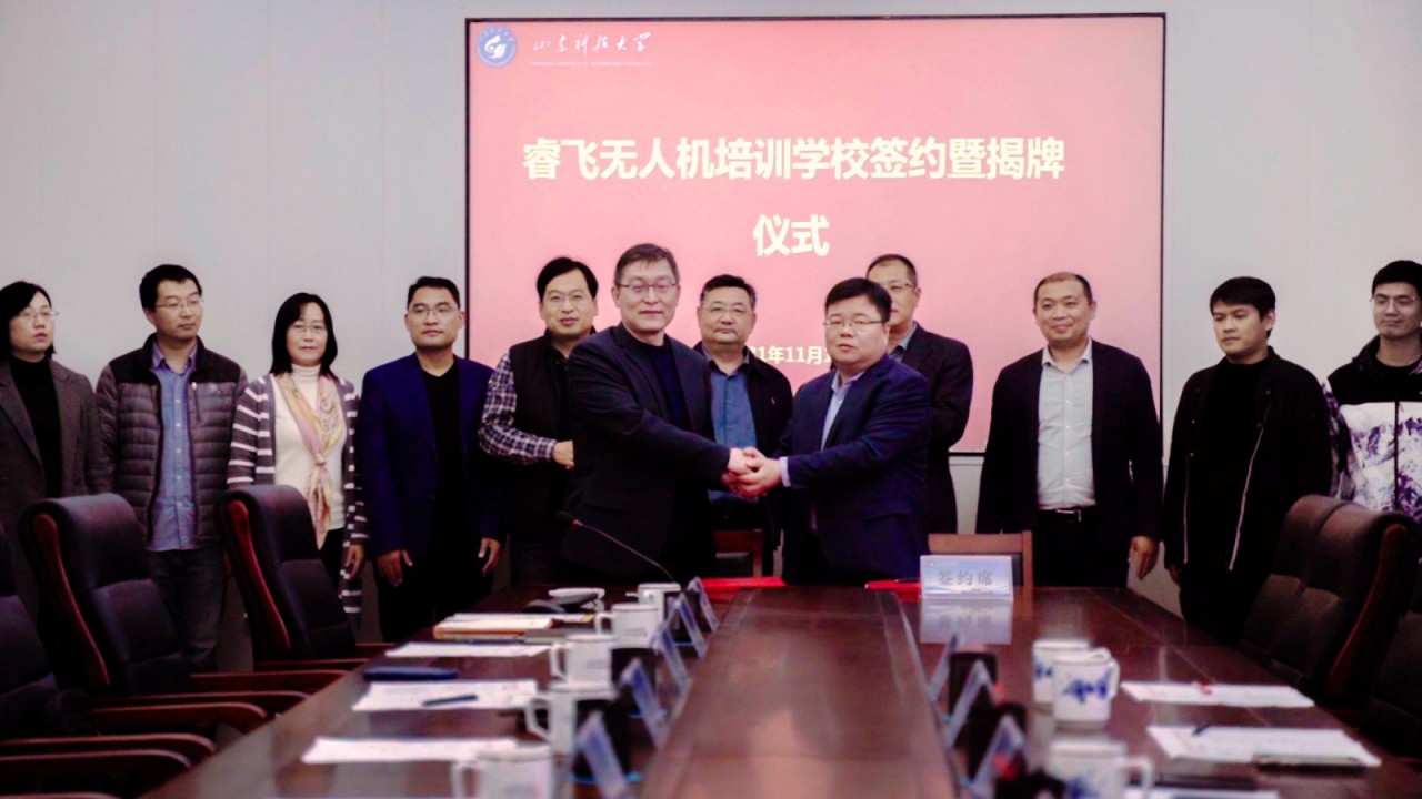 11月17日,ac米兰官网中文网站与瑞源工程集团举行“睿飞无人机培训学校”揭牌暨签约仪式。校党委副书记尹华,瑞源控股集团执行总裁、工程集团总经理于瑞建出席仪式并共同为“睿飞无人机培训学校”揭牌。测绘学院党委书记秦昌盛与山东瑞智飞控科技有限公司总经理孔锁财代表双方签署校企合作协议。