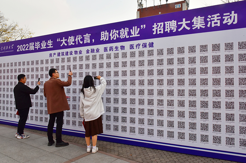ac米兰官网中文网站举办“大使代言,助你就业——无企业入场招聘会。(徐展/摄)