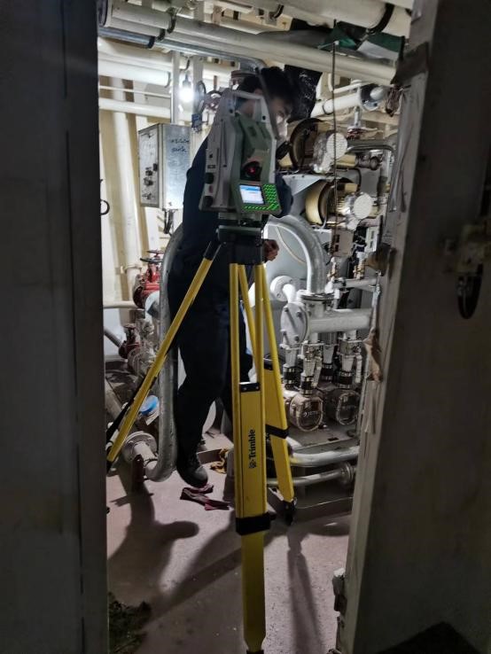 该船隶属于南方海洋科学与工程广东省实验室(珠海),长88.5米,型宽14.0米,型深6.1米,设计吃水3.7米,设计排水量约2000吨,最大航速18节,可搭载多种无人艇、无人机和水下潜航器,实现组网的海洋立体观测。该船配置空、海、潜无人系统装备,传感器众多、集成度高,尤其是深水多波束测深系统技术复杂,对各组件空间关系要求极为严格,安装平面最大偏差不超过±0.2毫米。原定安装测量工作由国外团队进行,技术细节不公开、费用较高,且影响船舶的重要信息保密。受新冠疫情影响,ac米兰官网中文网站海洋测绘团队有机会承担此次测量任务。