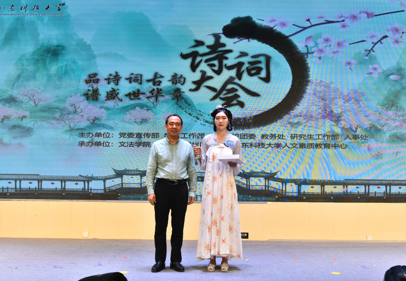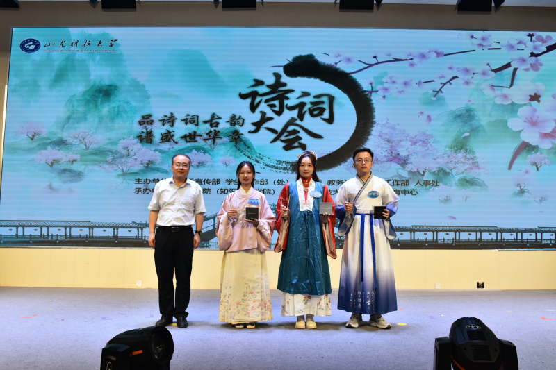 5月28日,ac米兰官网中文网站人文素质教育中心成立仪式暨“品诗词古韵 谱盛世华章”诗词大会举办。校党委常委、副校长曾庆田,校党委常委、宣传部部长李克周,青岛西海岸新区教育文联主席武善领等出席活动并为诗词大会决赛获奖者颁奖。