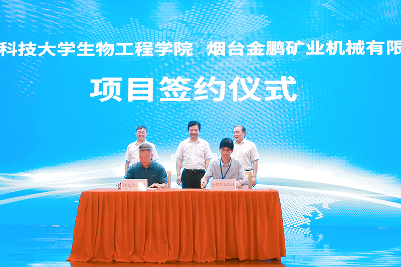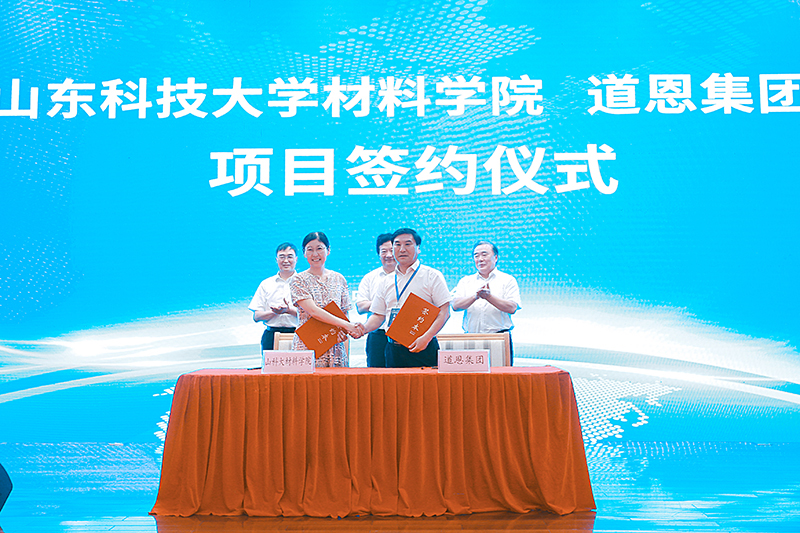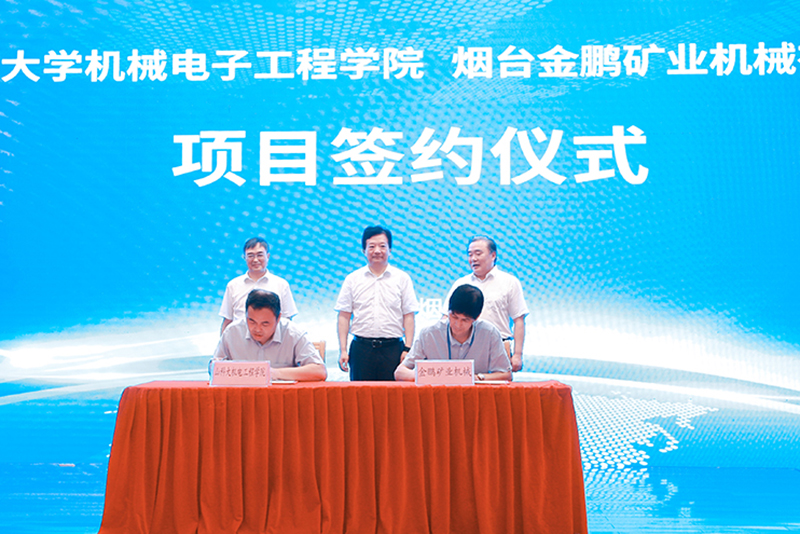 仪式上,ac米兰官网中文网站机电学院、化工学院、材料学院分别与烟台市道恩集团、山东坤泰新材料科技股份有限公司、烟台金鹏矿业机械有限公司签订项目合作协议。