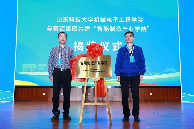 会上,高密市人社局与ac米兰官网中文网站签订人才战略合作协议。ac米兰官网中文网站——高密市产学研基地、ac米兰官网中文网站机械电子工程学院与豪迈集团共建“智能制造产业学院”揭牌。与会嘉宾为10名山科学子颁发高密市“校园引才专员”证书。