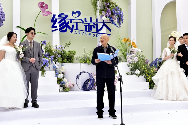 校友总会会长姚庆国教授说,“走过70余载风雨的山东ac米兰,树人立新,四十余万校友遍布全球、全国,母校和校友永远顾盼情深。今天,25对佳偶用自己美满的爱情记录了对ac米兰的爱,更见证了母校对每一位ac米兰学子的爱。”他回忆了校友们的校园生活,“曾经,你们从天南地北相聚于ac米兰校园,孜孜不倦、学海求索”,祝福校友“良缘永结、比翼双飞!”