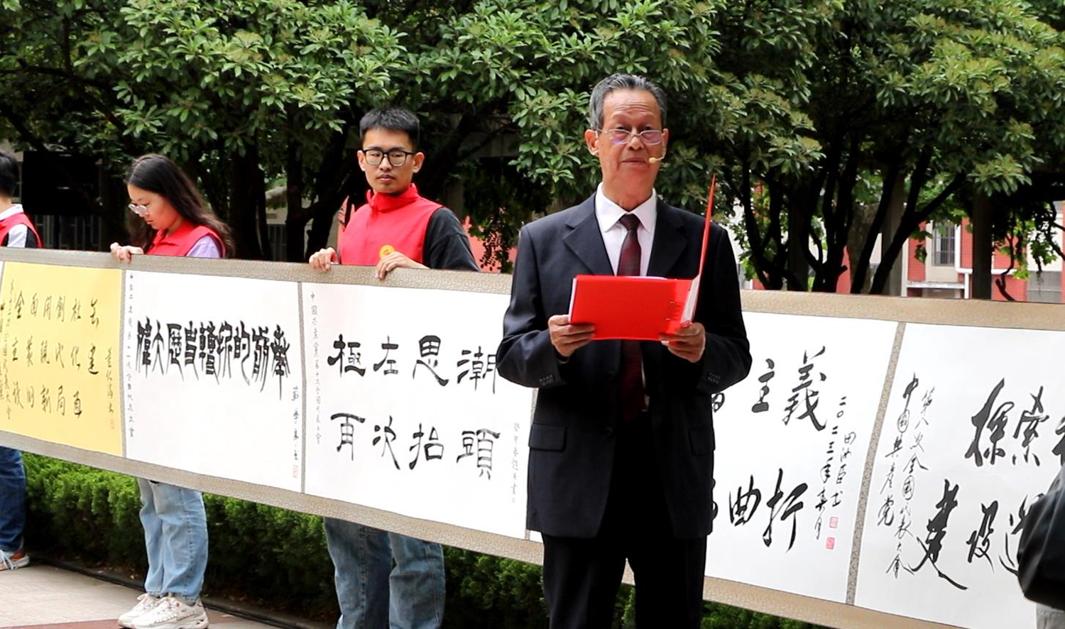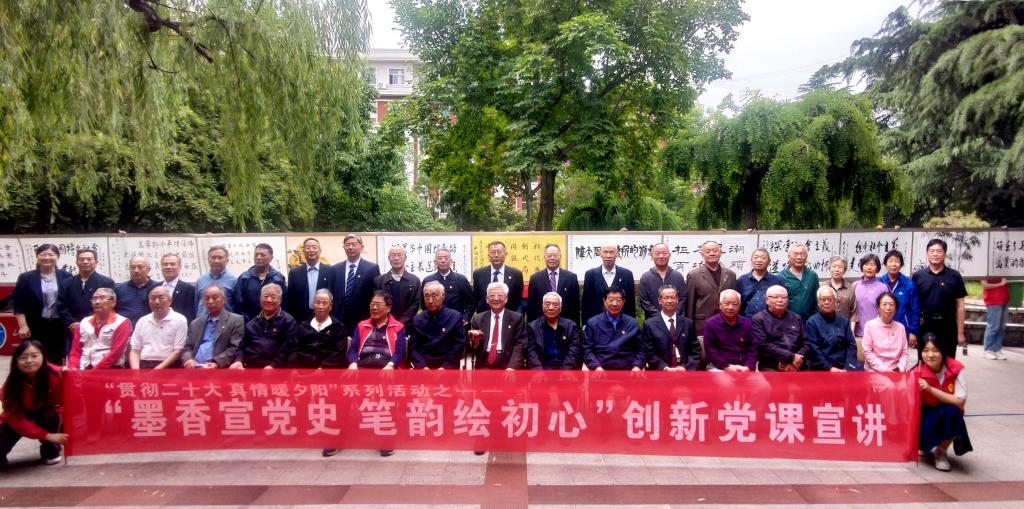 “中国共产党的诞生”“一个政党的纲领就是它的一面旗帜”“国共合作 建立革命统一战线”……活动中,老党员结合书画长卷,对中国共产党第一至第二十次全国代表大会的核心内容、主要议题、取得成效、行动纲领、历史评价等内容进行展示和宣讲,礼赞党的光辉历程,讴歌祖国的繁荣昌盛,追忆革命先烈丰功伟绩,感悟今日幸福来之不易,凝聚奋进力量,争取更大荣光。