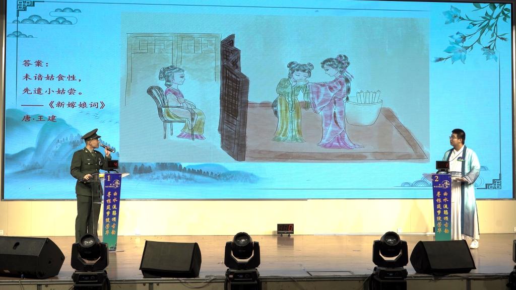 “马上相逢无纸笔,凭君传语报平安”“海上生明月,天涯共此时”……参赛选手满腹诗情、妙语连珠,充分展现了深厚的诗词底蕴和文化功底。经过比拼,文法学院汉语言文学2022级、退役复学学生杨帅获冠军。杨帅表示:“在我整个军旅生涯中,给我力量最多的就是诗词和文学。感谢学校为我们提供‘诗词大会’这个舞台,以后我会继续秉持着初心和理想砥砺前行。”