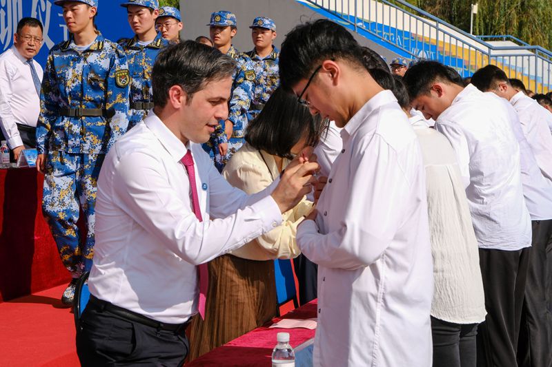 典礼上,承训部队代表、教师代表、本科生和研究生新生代表分别发言。在济南校区,斯威本科技大学副校长Douglas Proctor通过视频致辞。典礼同步举行了佩戴校徽及宣誓仪式,与会领导为新生代表佩戴校徽,全体新生面对国旗进行宣誓,立下了“爱党爱国,牢记使命;爱校荣校,勤学笃行;惟真求新,敢于担当;坚韧不拔,发奋图强;不忘初心,勇做新时代追梦人”的铮铮誓言。