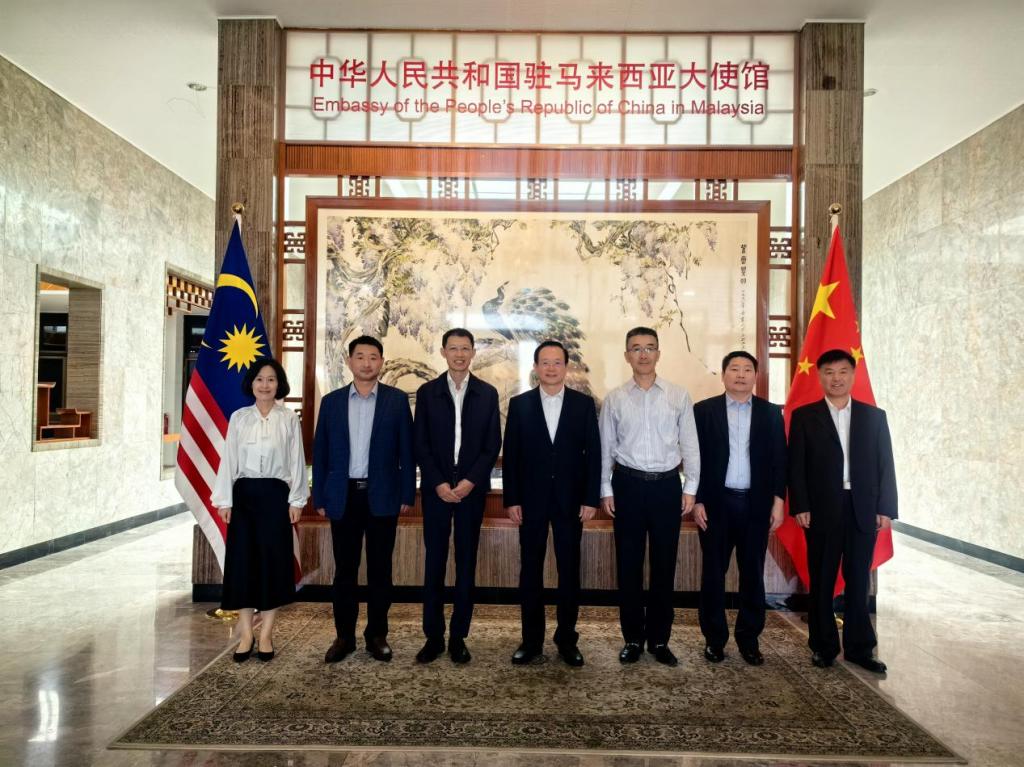 在中国驻马来西亚大使馆,代表团一行与中国驻马来西亚大使馆教育参赞赵长涛、科技参赞赵向东进行了座谈交流。两位参赞全面介绍了马来西亚高等教育和科技发展现状,分析了马来西亚的教育科技开放政策。罗公利详细介绍了学校近年来的发展成就,希望在使馆支持和指导下,加强与马来西亚高校在教育和科技领域的交流合作。双方围绕海外办学、联合研发中心建设以及师生双向交流等进行了深入交流。