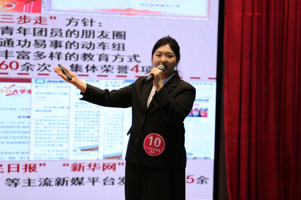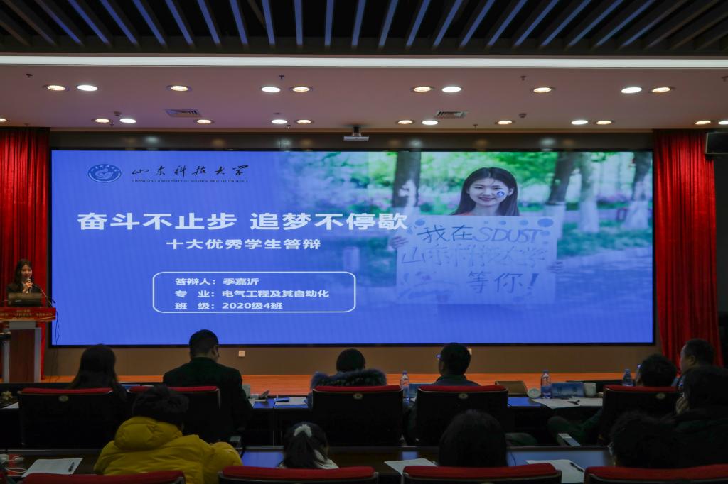 “十佳班级”的评选分为代表展示和集体展示两个环节,18个候选班级围绕班风建设、学风建设、制度建设、文化建设、班级特色等方面展示班级情况、取得的成绩及班级建设的经验。“十大优秀学生”的评选分为自我展示和抽题问答两个环节。17名候选人从专业学习、学术研究、科技创新、社会实践、志愿服务、文体艺术等方面介绍个人的基本情况、取得的成绩以及学习工作感悟。