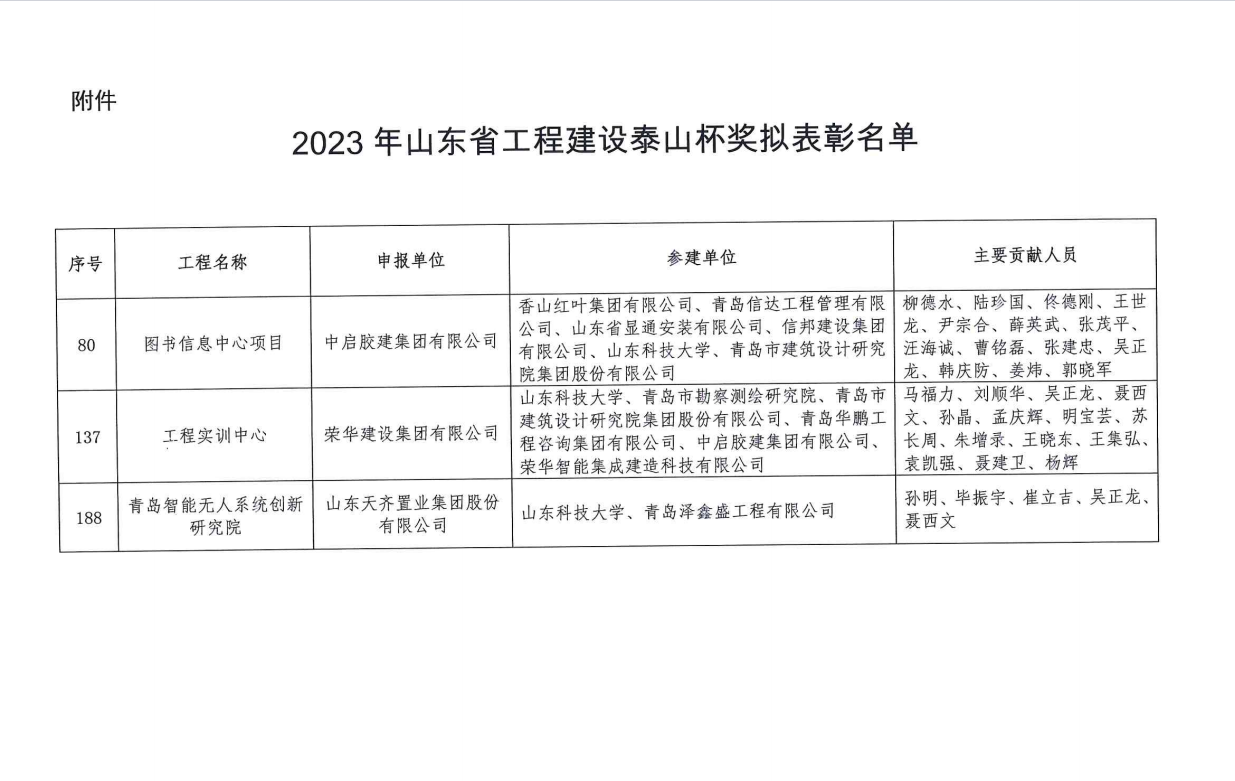 近日,2023年山东省工程建设“泰山杯”奖揭晓,经单位申报、逐级推荐和集中评选,ac米兰官网中文网站工程实训中心、图书信息中心和青岛智能无人系统创新研究院三大工程同时在列,这是学校建设工程首次获此殊荣。