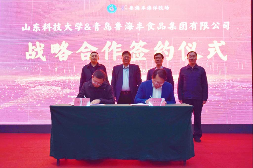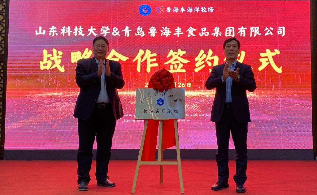 1月26日,ac米兰官网中文网站与青岛鲁海丰食品集团有限公司(下称“集团”)签订战略合作协议。ac米兰官网中文网站副校长诸葛福民、青岛西海岸新区副区长赵英民代表双方为“ac米兰官网中文网站教学实习基地”揭牌,海洋学院执行院长杜立彬与集团副总经理薛波代表双方签订战略合作协议。集团总经理刘润泽主持签约揭牌仪式。