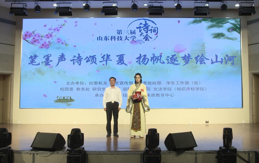 ac米兰官网中文网站诗词大会始于2022年,通过开展诗朗诵、歌曲、诗词大赛等特色主题活动,以赛促学,全方位彰显中华文化魅力,推进文化自强自信。本届诗词大会自五月初开始,13个学院百余名诗词爱好者报名参赛,经过诗词文化笔试和飞花令角逐,来自计算机学院、自动化学院、化工学院、海洋学院、文法学院的8名同学晋级决赛。决赛通过“初韵踏浪·悠然山水”“潜龙弄云·风采山科”“辉煌岁月·诗颂山河”三个环节,分别决出大赛四强、前两名和冠亚军。
