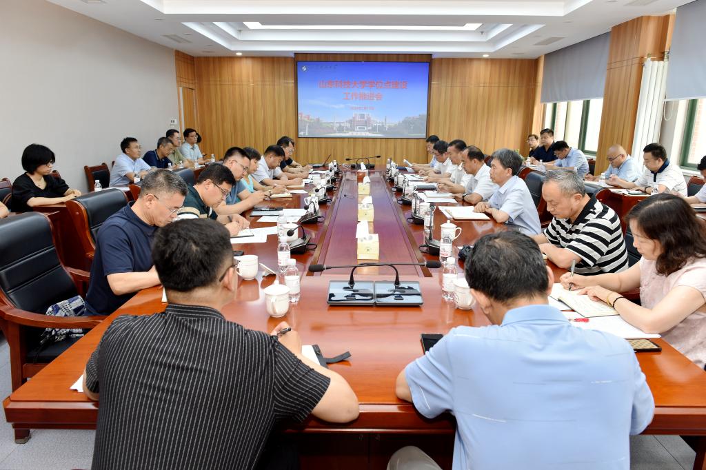 会上,研究生院院长、学科建设办公室主任韩作振通报学位点建设工作总体情况。相关学院汇报学位点建设进展。