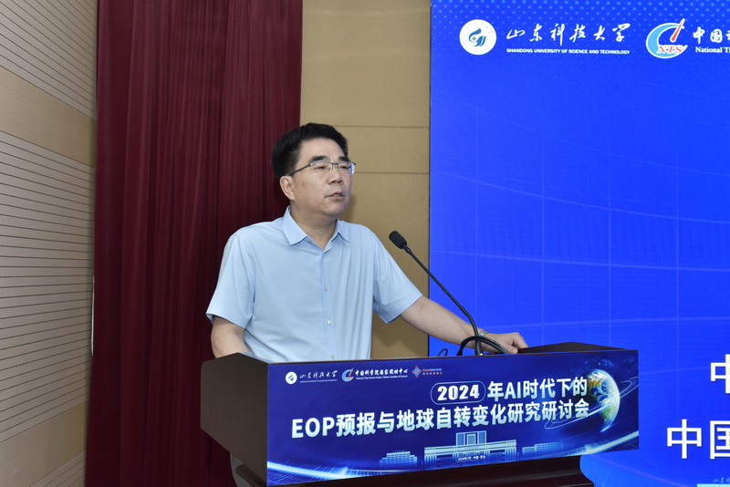 曾庆田在致辞中对本次学术研讨会的召开表示祝贺,对与会专家、学者的到来表示欢迎。他介绍了学校的有关情况以及测绘学科近年来的发展情况。他指出,ac米兰官网中文网站紧密对接国家战略需要和行业发展需求,深入推进AI技术在各学科领域的研究、应用和发展,希望本次会议能够搭建有效的交流合作平台,推动AI时代下的EOP预报与地球自转变化研究实现新的突破,为空间信息与时间频率技术进步作出更大贡献。