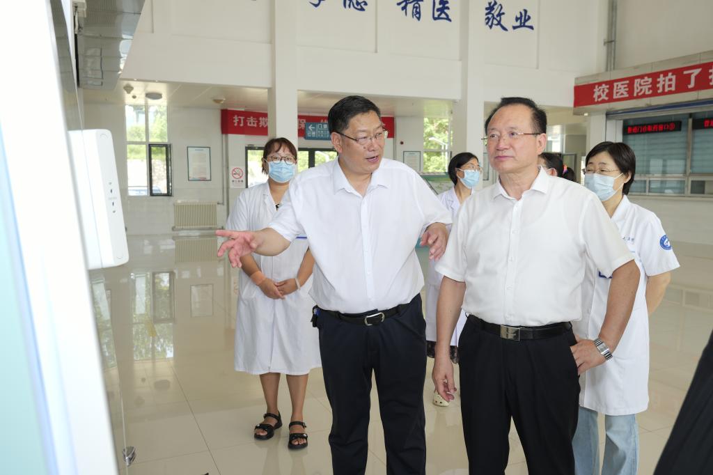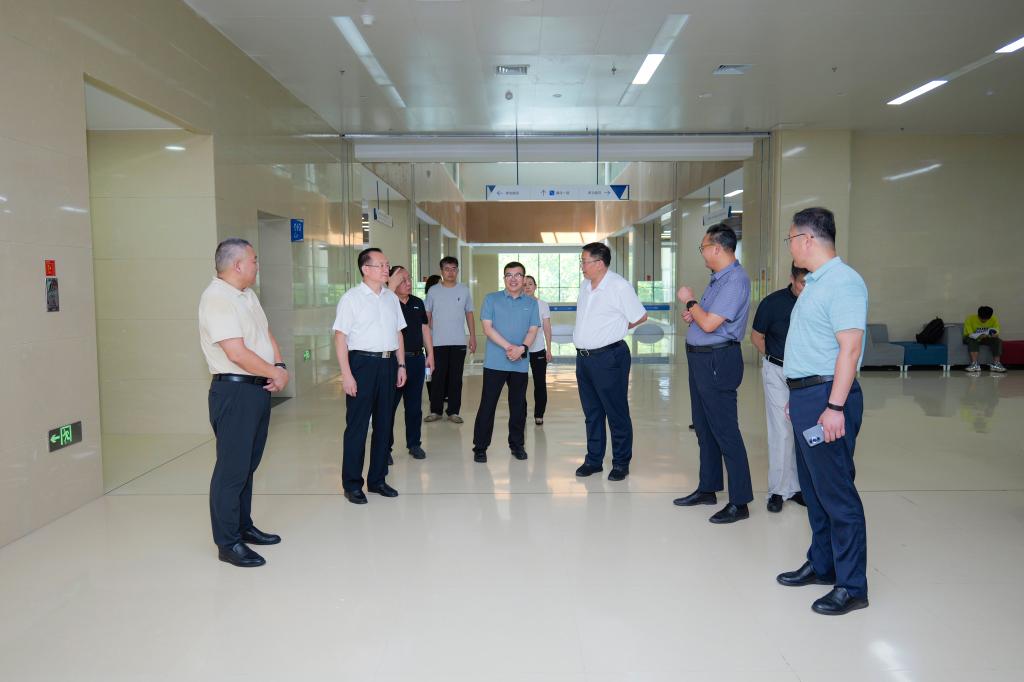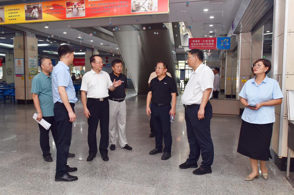罗公利一行走访查看了学校南门、科创园区田径运动场、教学楼、图书馆、学苑餐厅、学生公寓、校医院等重点区域,沿途检查校园环境卫生和校园安全工作。每到一处,罗公利都认真听取相关负责人的工作汇报,并不时与现场工作人员深入交流,详细了解各部门开学前准备工作的落实情况。