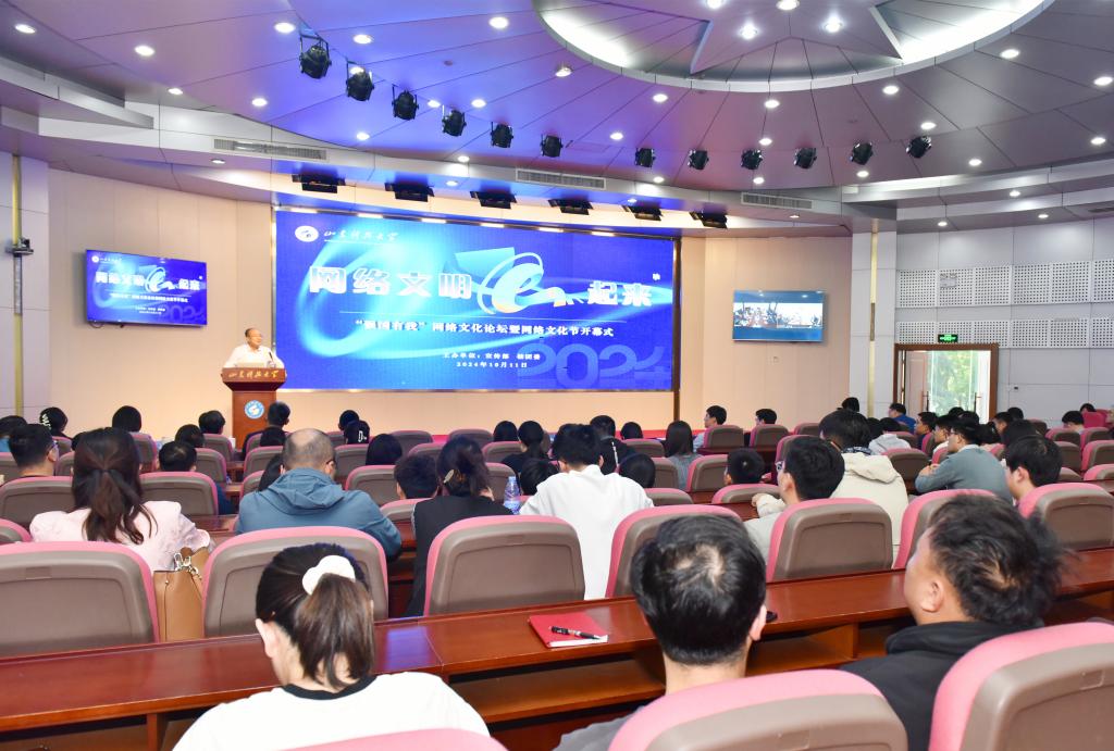 10月11日,ac米兰官网中文网站“强国有我”网络文化论坛暨网络文化节开幕,邀请校内外专家分享加强网络文化建设的心得与建议。校党委常委、宣传部部长李克周出席开幕式并致辞。