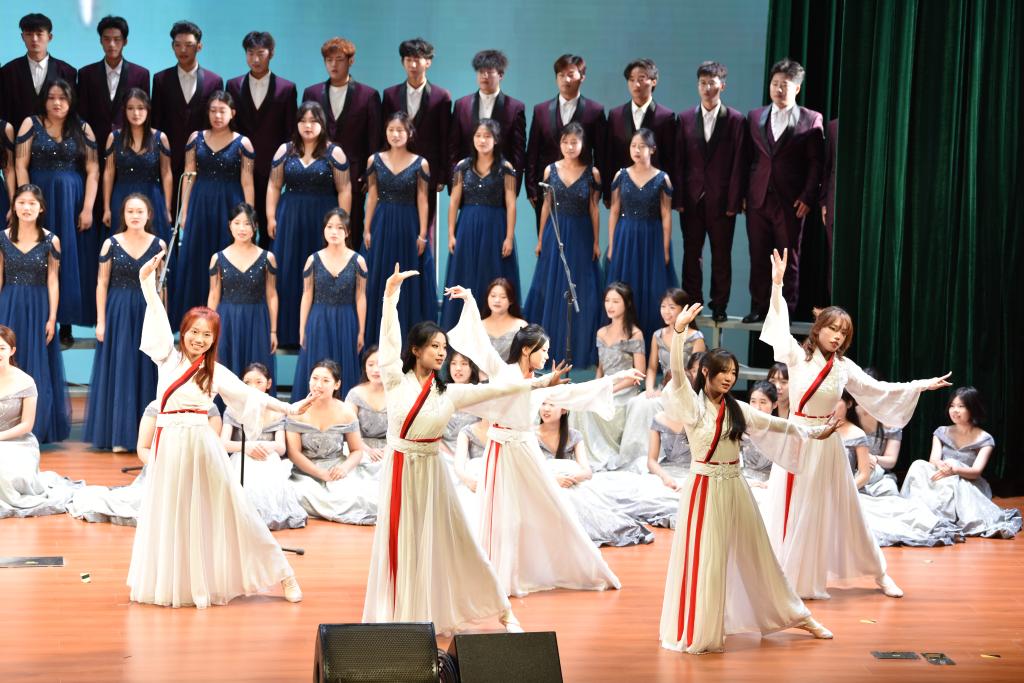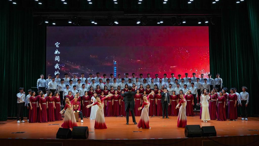 “我和我的祖国,一刻也不能分割;无论我走到哪里,都流出一首赞歌……”10月22日,学校“青春礼赞祖国 强国复兴有我”大学生合唱比赛暨第九届博艺节开幕。19支代表队、3500名师生齐聚在图书信息中心惟真讲堂共上一堂有声有色的舞台上的思政大课。他们结合讲、演、奏的方式,以铿锵有力、嘹亮动人的歌声,歌颂伟大祖国,吟唱难忘岁月,展望美好征程。