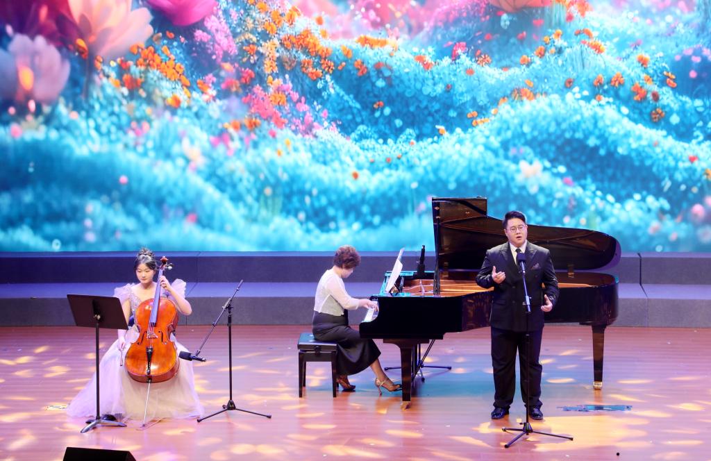 音乐会在激昂的管乐合奏《黑神话·悟空》中拉开帷幕,一曲《云宫迅音》瞬间点燃了现场的气氛。管乐团与女高音完美配合,深情演绎了歌曲《如愿》,歌唱祖国太平盛世;二胡重奏《鸿雁》以其精湛的演奏、细腻的表现力和悠扬动人的旋律,展现了传统丝竹乐器的独特魅力;女声三重唱演绎了《花儿为什么这样红》,用动人的旋律歌颂了中国人民在争取民族独立和人民解放的斗争中作出的不懈努力;男声四重唱《青春舞曲&库斯克邮车》不仅展现了青春的活力与激情,更唱响了我国在实现社会主义现代化征程上取得的辉煌成就;钢琴独奏《黄河愤》激昂澎湃,奔腾不息的旋律如同黄河坚韧不拔、自强不息、勇于创新、无私奉献的独特精神风貌;钢琴六手联弹《查尔达什舞曲 & 拉德斯基进行曲》灵动欢快,他们的指尖在琴键上跳跃,充满了生机与活力,碰撞出了不一样的火花。
