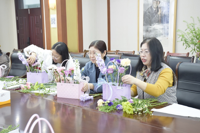 机电学院、材料学院、数学学院分别举办主题插花活动。在花艺师的指导下,女教职工学习体验了插花技艺,创作了一盆盆独具匠心、色彩斑斓的插花作品,不仅展现了女教师们对美的独特理解和追求,也蕴含着她们对生活的热爱和对未来的美好祝愿。活动现场花香四溢,笑语盈盈,洋溢着温馨浪漫的节日氛围。