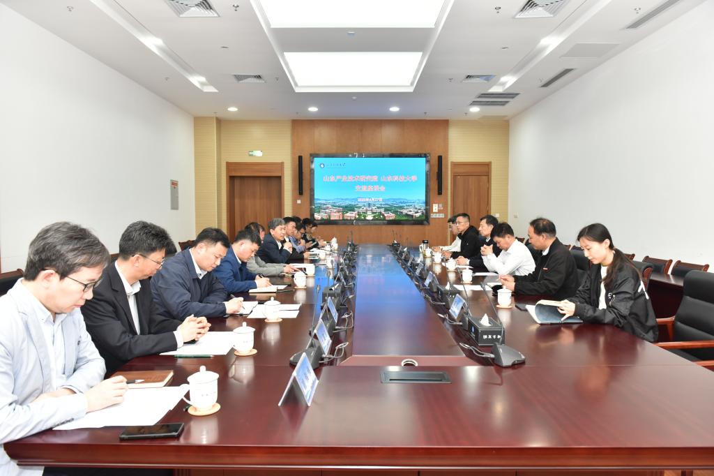 王君松对陈西武一行的到来表示欢迎,对山东产业技术研究院在学校建设发展方面给予的支持和帮助表示感谢。他介绍了学校的发展近况和学校第四次党代会相关情况,希望双方加强交流合作,共同进步发展。