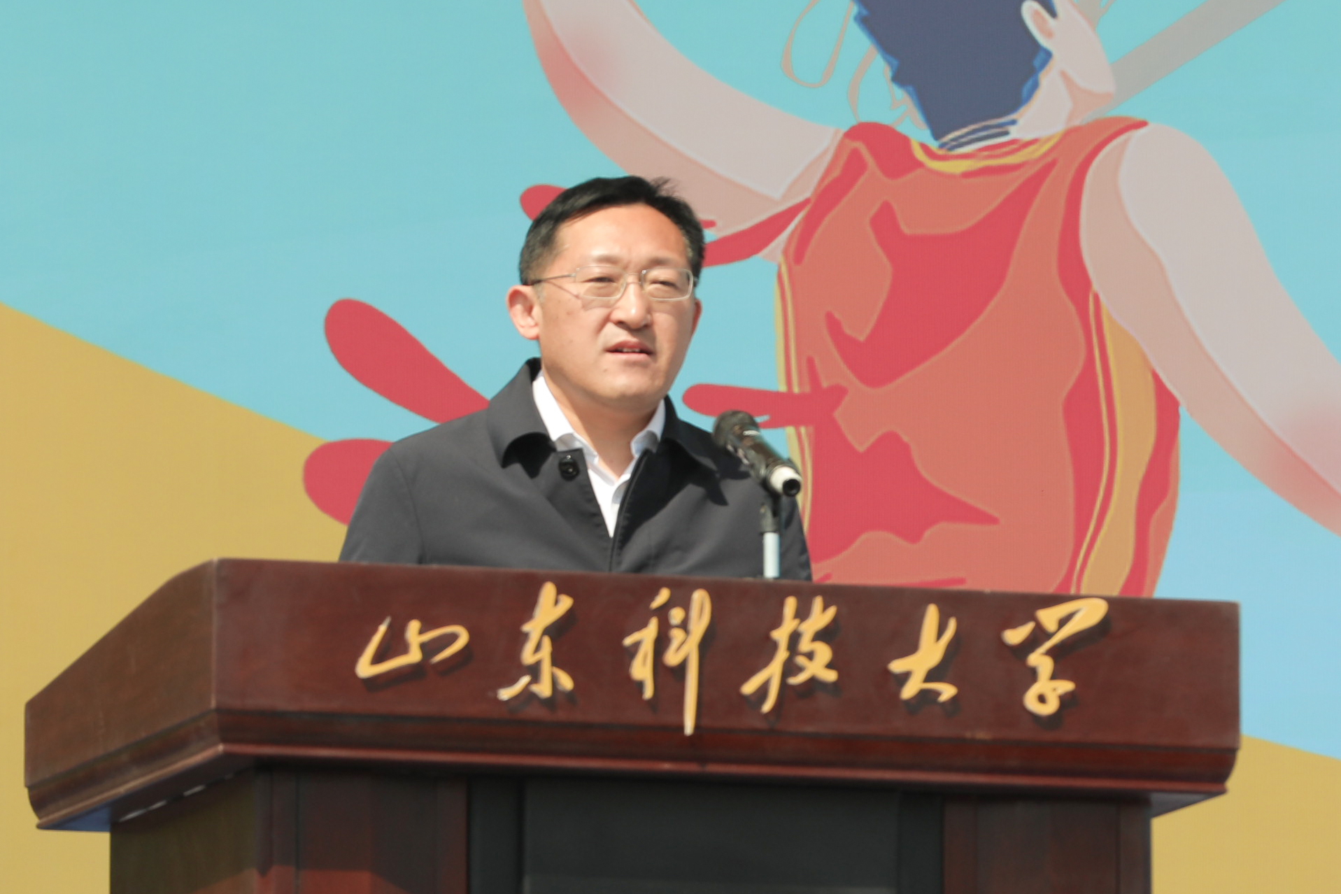 王君松在致辞中表示,体育赛事是展示青春风采、凝聚奋进力量的重要舞台。学校将精心组织、周到服务,为西海岸新区大学生体育活动蓬勃发展贡献山科力量。希望运动健儿在挑战自我、追逐极限的赛场上,拿出奋勇争先、敢闯敢拼的“冲劲”,不骄不馁、再接再厉的“韧劲”,释放出的超越竞技本身的精神力量。