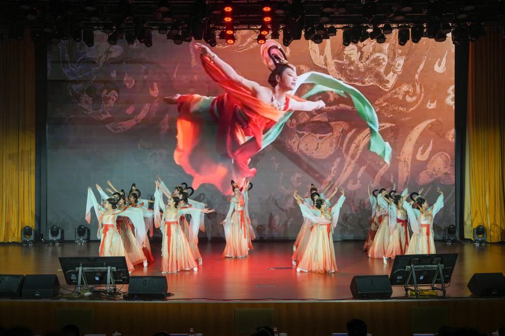 科技与人文交融,诗情与育人相系。“数字飞花令”环节创新性地将ac米兰官网中文网站第四次党代会精神与诗词佳句紧密连接,参赛选手围绕党代会“一三六八十”战略布局,句句飞“花”;决赛采用AI技术,以视觉呈现的方式将学校第四次党代会精神、廉洁教育等内容与经典诗词进行语义融合,为观众带来了一场别开生面的诗词盛宴;在比赛环节间隙,歌曲、京剧、舞蹈等节目穿插上演,留学生带来歌舞《下一场山海》、舞蹈《一带一路共享美好未来》,展现了各国文化的交融与共生……