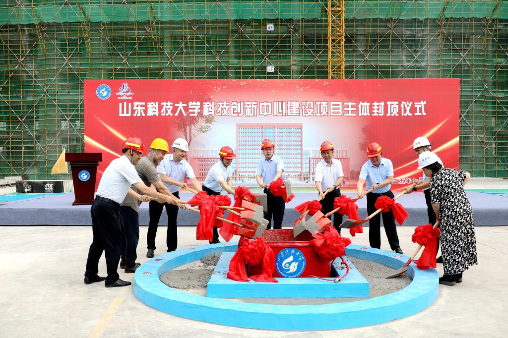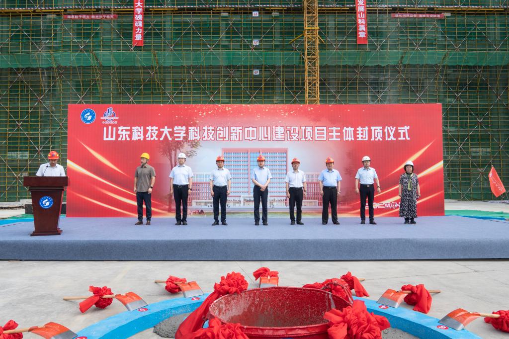 7月2日上午,ac米兰官网中文网站科技创新中心项目主体封顶仪式举行。校党委书记王君松、校长曾庆田、副校长徐方全,学校相关部门负责人以及参建单位代表参加仪式。徐方全和施工单位负责人分别致辞。