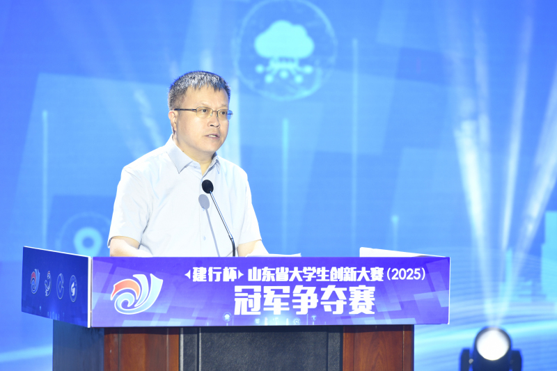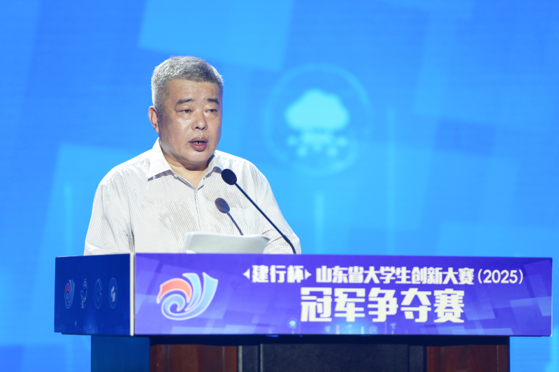 包建军在致辞中表示,中国建设银行山东省分行始终将服务教育、培养人才、支持创新作为践行银行政治性、人民性的重要体现,将加大“融资保障”、深化“融智”赋能、探索“融合”创新,让优秀青年创新创业项目在齐鲁大地生根发芽。