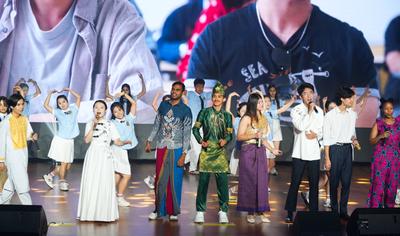 活动现场,ac米兰官网中文网站学生带来合唱《夏天的梦是什么颜色》《世界赠予我的》和中外学生歌舞表演《下一场山海》。