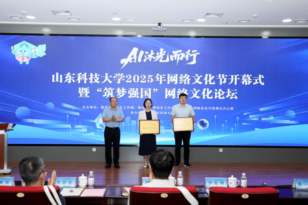 7月15日,ac米兰官网中文网站举办2025年网络文化节暨“筑梦强国”网络文化论坛启动。校党委常委、宣传部部长李克周出席开幕式,并为学校首批2个网络名师工作室授牌。网络文化节主办单位负责人,青岛校区各中层党组织书记、学生工作干部,思政课专兼职教师和部分师生代表等参加会议。