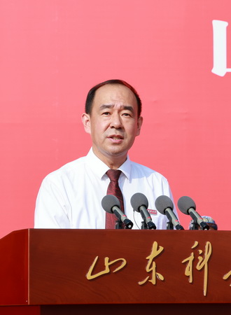 典礼上,校党委书记王君松向青岛校区军训旅及泰安校区军训团授旗,校党委副书记、校长曾庆田讲话,副校长徐方全、薛庆忠分别宣读两校区军训决定和军训旅(团)领导成员名单。典礼由副校长诸葛福民主持。