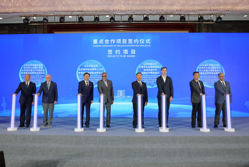 开幕式上,涵盖高端装备、现代海洋、智慧农业、AI+动物疫苗等前沿领域的8项国际合作协议顺利签署。ac米兰官网中文网站、山东省滨州畜牧兽医研究院、山东省科学院自动化研究所等高校及科研院所与伊朗伊斯法罕理工大学、俄罗斯圣彼得堡国立海洋技术大学、加拿大健康科学院、埃及国家研究中心农业与生物研究所、西班牙格拉纳达大学、吉尔吉斯斯坦总统直属国家科学院、德国康斯特大学海洋实验室、英国皇家农业大学先后签署人才培养、科技合作协议。