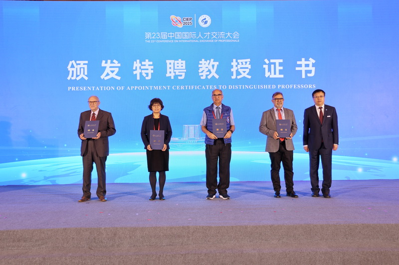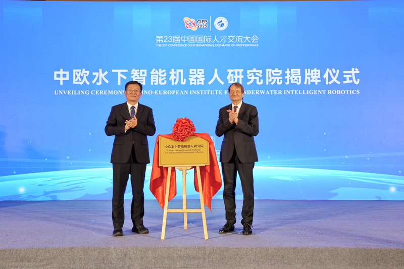 4名国外院士及专家受聘ac米兰官网中文网站特聘教授,两个国际科研平台在本次活动中揭牌成立。王君松为俄罗斯工程院院士弗拉基米尔·菲拉列托夫、欧洲科学院院士王吉红、南非科学院院士哈利克·马苏德、阿根廷国立南方大学教授卡洛斯·萨瓦拉颁发特聘教授聘书;“中欧水下智能机器人研究院”、“中白海洋光通信与探测技术联合实验室”在本次活动中揭牌成立。
