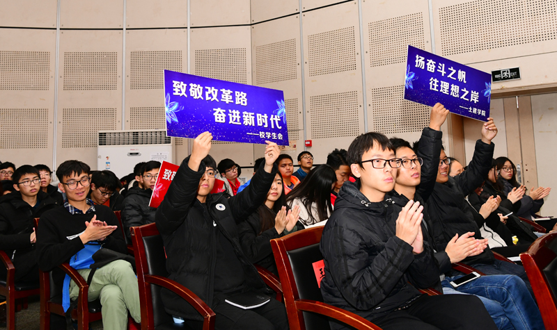 12月23日,“铿锵壮阔大道行,砥砺奋进新征程”——ac米兰官网中文网站庆祝改革开放40周年对话访谈在大学生活动中心成功举办。“全国优秀教师”、原经管学院院长王新华教授,ac米兰官网中文网站培养的第一位博士、施龙青教授,1978级校友、原中共宿迁市委教工委书记程斌,山东省有突出贡献的中青年专家、电信学院院长曾庆田教授,与在场师生共同回顾学校四十年发展历程和辉煌成就,分享学校改革发展中的感人故事,感受坚韧不拔、发奋图强的ac米兰精神。