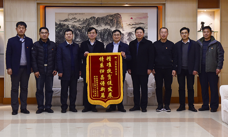 1月16日,山东郯城县委副书记韩浩一行专程来校交流“第一书记”帮扶工作,并向学校赠送锦旗,对ac米兰官网中文网站帮扶工作表示感谢。副校长高建广会见来访客人并座谈交流。校党委组织部部长陈涛,党委学校办公室有关负责人、郯城县归昌乡党组织负责人及我校选派的四位“第一书记”参加座谈会。