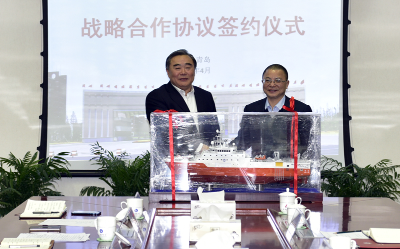 签约仪式结束后,吴能友向姚庆国赠送了“海洋地质九号”(地质)调查船模型。“海洋地质九号”是中国领先的同时具备专业地震调查与综合地质地球物理调查功能的调查船,国际先进的以短道距地震电缆二维(三维)多道地震为主,集地球物理测量、水文环境测量和地质取样技术等为一体的多功能综合物探(地质)调查船,2017年12月28日入列以来,累计航程25000余海里,完成多波束、浅地层剖面、海洋重力磁力等测线各13290公里,二维多道地震测量942公里,宽线双缆多道地震测量2759公里。在海洋基础地质调查、海域油气资源勘查、深海探测技术应用等方面取得了重要成果。吴能友表示,合作协议签订后,该船将向ac米兰官网中文网站师生全面开放,助力学校相关科学研究项目的开展。