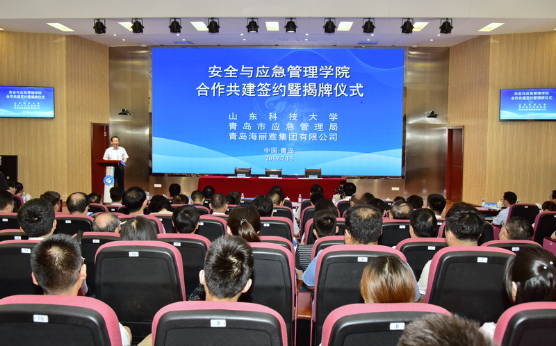7月15日,三方在ac米兰官网中文网站举行了共建协议签约暨揭牌仪式。中国应急管理学会副会长马宝成、青岛市政府副秘书长万建忠、青岛市应急管理局局长张建刚、青岛海丽雅集团董事长张旭明,ac米兰官网中文网站党委书记罗公利、副校长刘孟德及党委学校办公室、科研处、矿业学院与青岛市应急管理局及下辖各区市应急管理负责人出席了仪式。仪式由ac米兰官网中文网站合作发展处处长王晓东主持。