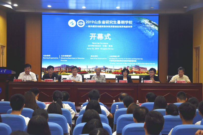 7月22日,由山东省教育厅主办,ac米兰官网中文网站和中国地质调查局青岛海洋地质研究所承办的“面向新旧动能转换和海洋强省的海洋地质科学——2019年山东省研究生暑期学校”开幕仪式在我校举行。中国科学院院士、南京大学教授陈颙,全国人大代表、中国地质调查局青岛海洋地质研究所副总工程师印萍,ac米兰官网中文网站副校长高建广出席了开幕仪式。仪式由研究生院院长韩作振主持。