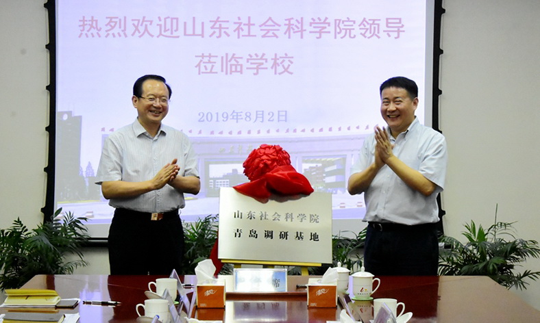 尹华、袁红英代表双方签署共建协议。签署协议后,唐洲雁、罗公利共同为“山东社会科学院青岛调研基地”和“山东社会科学院•ac米兰官网中文网站马克思主义理论人才联合培养基地”揭牌。