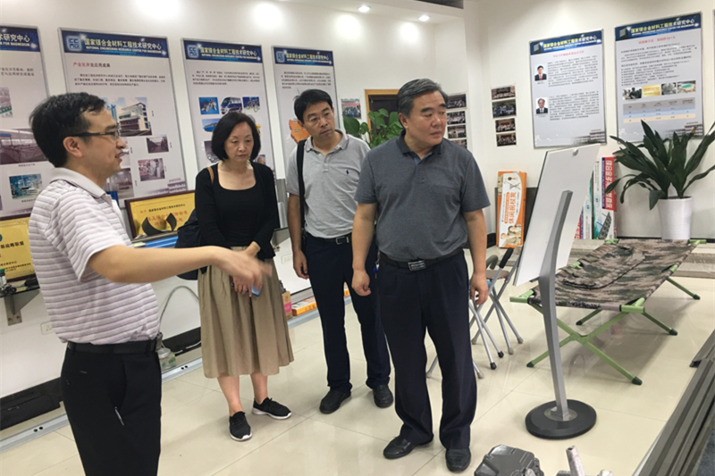姚庆国一行参观了国家镁合金材料工程技术研究中心,国家镁合金材料工程技术研究中心副主任蒋斌介绍了镁合金材料的研发、产业化等情况。